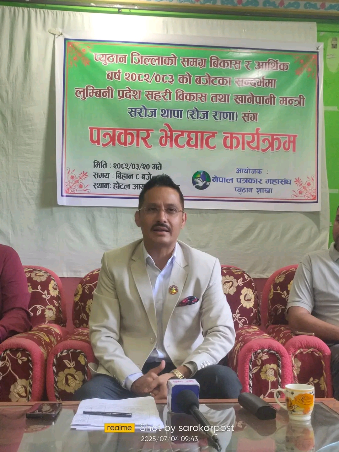 प्यार अलि खान प्युठान। लुम्बिनी प्रदेश सरकारका शहरी विकास तथा खानेपानी मन्त्री सरोज थापा (रोज राणा) ले जनतासँग..