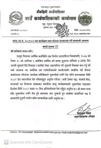 यस अनुरूप, हाल गाउँपालिकासँग सम्झौता भई योजना कार्यान्वयनमा रहेका उपभोक्ता समितिहरूलाई भुक्तानीका लागि आवश्यक कागजातहरु २०८२ साल जेठ मसान्तभित्र अनिवार्यरूपमा पेश गर्न अनुरोध गरिएको छ।